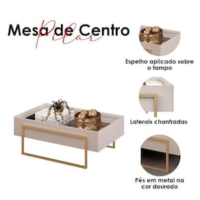 Começou a montar sua sala? Então apresentamos para você esta bela mesa de centro da linha Pilar. Seu tampo com espelho aplicado entrega mais sofisticação. As laterais chanfradas garantem um acabamento refinado e harmonioso, enquanto os pés em metal na cor dourado dão um toque de modernidade e charme, além de oferecer resistência e estabilidade. Fabricada pela DJ Móveis, é desenvolvido em MDP/ MDF de alta qualidade, derivados de madeira de reflorestamento, reforçando o compromisso com a sustentabilidade sem abrir a mão da durabilidade. Sendo uma peça ideal para quem busca combinar elegância e funcionalidade para compor sua sala com estilo e bom gosto. Confira e aproveite!