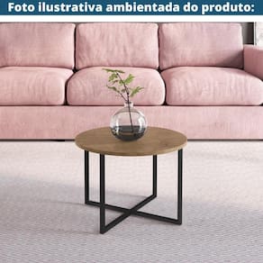 Mesa De Centro Redonda Artesano 50 Cm (largura) Em Mdp Bp Estrutura Preta Metálica Em Aço Vermont