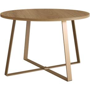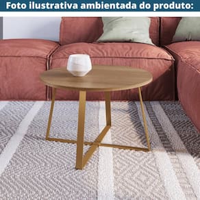 Mesa de Centro Redonda Artesano 60 cm (largura) em MDP Estrutura Metálica em Aço Dourado - Amarelo Ouro