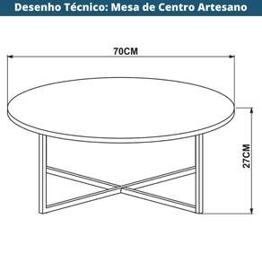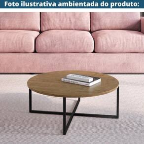 Mesa de Centro Redonda Artesano 70 cm (largura) em MDP Vermont Estrutura Metálica em Aço Preta - Marrom