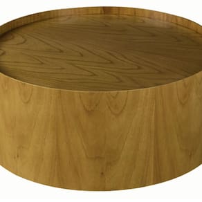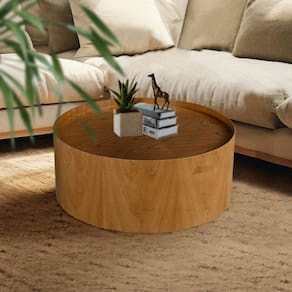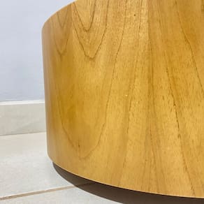 A mesa de centro redonda com lâmina de madeira natural de cinamomo é uma peça elegante e funcional para a sua sala de estar. Aqui estão alguns detalhes completos: