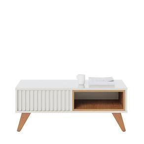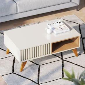 Inspirada no estilo retrô, a mesa de centro Jeri é um móvel prático e funcional. Ideal para compor diversos espaços da casa, como sala de estar, sala de tv ou até mesmo em salas de espera de ambientes de escritório, servindo como apoio para revistas, vasos e demais objetos decorativos. Pode ser usada de ambos os lados, pois possui o design simétrico com nichos internos em cada lado e pés em madeira maciça. Ambiente Principal: Sala de Estar Complexidade da Montagem: Baixa: pode ser montado por uma pessoa sozinha Cor: Off White/Freijó Cor do Produto: Off White/Freijó Dobrável: Não Escala de Brilho: Fosco Formato da Mesa: Retangular Itens Inclusos: 1 Mesa de Centro, Kit Ferragens e Manual de Montagem Linha ou Coleção: Águas Brasileiras Manual de Especificação Técnica: Manual de Montagem e Instalação: https://cdn2.madeiramadeira.com.br/atributo/colibri-moveis/909451-1-526-jeri.pdf Material do Tampo: MDP Material Principal: MDP Necessita Montagem: Sim Origem do Produto: Nacional Peso: 23,1957 kg Possui Base: Não Possui Espelho: Não Possui Possui Gavetas: Não Possui Portas: Não Possui Prateleiras: Não Recomendações de Uso, Manutenção e Limpeza: Limpar utilizando apenas pano umedecido com água, nunca utilizar abrasivos ou esponjas de aço. Sistema de Montagem: Cavilhas, Parafusos e Cola Suporta Até (kg): 8 kg undefined: 720008