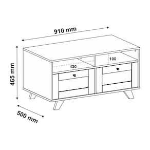 Dimensões do produto montado: Altura: 46,5cm | Largura: 91cm | Profundidade: 50cm *Você pode consultar as medidas detalhadas na imagem técnica do produto.