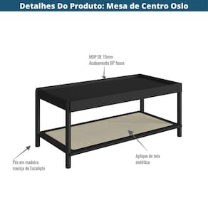 A Mesa de Centro Oslo é confeccionada em MDP com acabamento BP, pés de madeira maciça e aplique de tela sintética na prateleira inferior, assume um papel importante na decoração, além de ser um móvel de apoio, é funcional e aberta a muitas possibilidades na hora de decorar. Traz como característica um traço artesanal, suave e acolhedor. Com design escandinavo minimalista, remete em suas linhas retas a simplicidade, charme e funcionalidade que sua casa merece. Composta com uma paleta de cores neutras, onde refletem as paisagens nas quais a linha foi inspirada, tornando-se assim a opção ideal para um ambiente com toque sofisticado e ao mesmo tempo aconchegante.