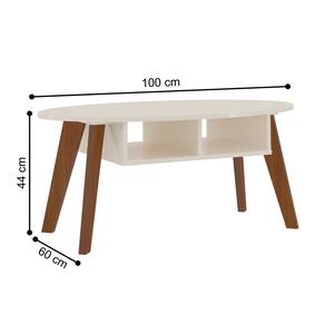 Feito em MDF/MDP 15mm. Possui 2 nichos para objetos e tampo oval de MDF.
