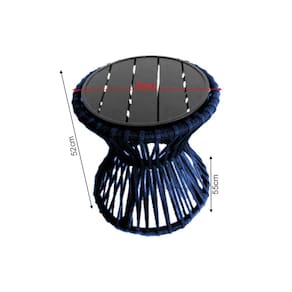 Mesa de Centro Sol em Corda Náutica e Base em Alumínio Preta 50cm Azul Marinho