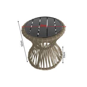 Mesa de Centro Sol em Corda Náutica e Base em Alumínio Preta 50cm Rami - Bege