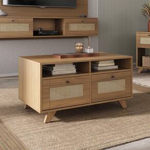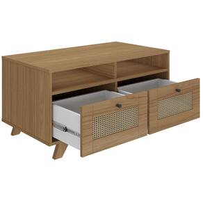 Mesa de Centro Trama 2 Gavetas 2 Prateleiras Carvalho / Palha -