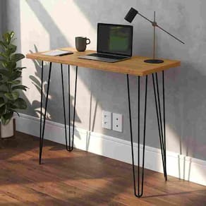 Os famosos hairpin legs estão em alta. Eles são produzidos com barras cilíndricas de aço maciço com 8 mm de diâmetro, possuem tratamento químico anticorrosivo e sapatas de plástico.