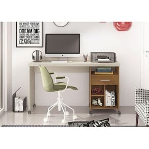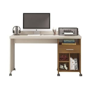 Mesa De Computador Escrivaninha Office Rodízios Gaveta E Nichos