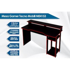 Material de Estrutura - Estrutura 100% MDP Vantagens Extra dos Móveis de Escritório - Mesa Gamer Tipo de Pintura - Pintura em UV (Ultravioleta) Tipo de Acabamento da Pintura - Pintura Alto Brilho ou Fosca