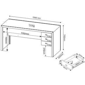 Dimensões(Cm): Comprimento(Profundidade): 60cm x Largura: 155cm x Altura: 74,5cm
