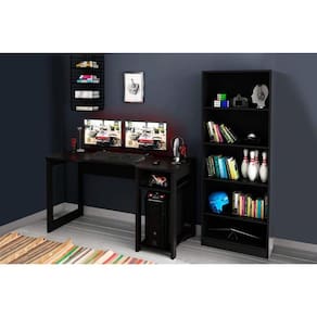 Mesa De Computador Quarto Gamer ( De Computador + Estante) 2 Peças Preto - Tecno Mobili