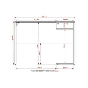 Dimensões(Cm): Comnto(Profundidade): 60cm x Largura: 105cm x Altura: 74,5cm Material de Estrutura - MDP/BP Tipo de Pintura - Pintura em UV (Ultravioleta) Tipo de Acabamento da Pintura - Pintura Semi Brilho Quantidade de Portas - 1 Porta de Abrir Quantidade de Gavetas - 1 Gaveta Quantidade de Prateleiras - 1 Prateleira - 2 Prateleiras Montagem do Produto - Desmontável Garantia - Garantia de 90 dias Certificação de Qualidade - Qualidade Aprovada