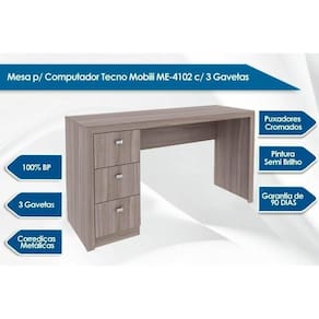 Mesa de Computador ME4102 c/ 3 Gavetas Branco - Tecno Mobili