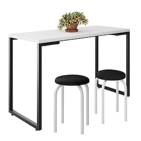 Esse kit é essencial e você vai se encantar com a praticidade. Conheça a Mesa de Cozinha Bistrô Porto Branco 120cm com 2 Banquetas Industriais Maviê Preto/Branco, da Mpozenato!