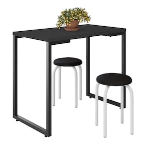Esse kit é essencial e você vai se encantar com a praticidade. Conheça a Mesa de Cozinha Bistrô Porto Preto 90cm com 2 Banquetas Industriais Maviê Preto/Branco, da Mpozenato!
