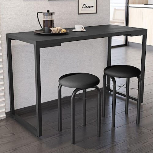 Conjunto Mesa De Cozinha Prattica Industrial 120cm Com 2 Banquetas F02 Preto - Mpozenato