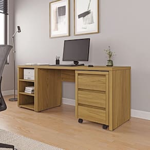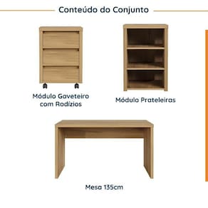 1x Mesa de Escritório em Tamburato Acabamento em BP 135cm Ficus Rovere Largura: 135 cm Altura: 75,6 cm Peso: 30,1 kg Profundidade: 59,8 cm Necessita Montagem: Sim