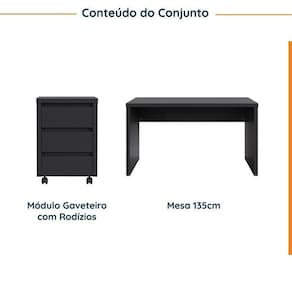 Com um design minimalista e elegante, o Conjunto Home Office Ficus foi projetada para permitir que você crie diferentes configurações para atender às suas necessidades de espaço e organização combinando este móvel com outros da linha Ficus. Seja para um escritório em casa ou para uma empresa, esta peça irá adicionar um toque de sofisticação e funcionalidade ao seu ambiente de trabalho. Esta linha foi desenvolvida com uma técnica especial que consiste em unir várias camadas de MDF de alta qualidade, formando um painel leve porém resistente e com aparência robusta de 37mm de espessura, conhecido como tamburato. O acabamento das chapas é em BP com fitas de borda em PVC que conferem ainda mais durabilidade e resistência à umidade para o móvel. Possui também sapatas niveladoras que possibilitam o correto ajuste do móvel em qualquer piso. Acabamento: BP Altura do Conjunto: 74 cm Ambiente: null Ambiente Principal: Escritório Cor: Preto Informação Complementar: 1x Mesa de Escritório em Tamburato Acabamento em Bp 135cm Ficus Cabecasa Madeiramadeira Preto Largura: 135 cm Altura: 74 cm Peso: 30,1 kg Profundidade: 59,8 cm Necessita Montagem: Sim