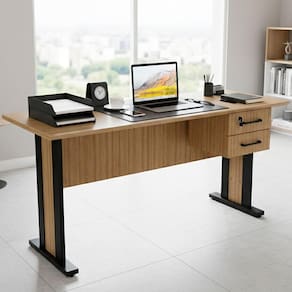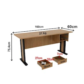 A Mesa de Escritório ME4193 é perfeita para escritórios corporativos, home offices e salas de estudo, unindo funcionalidade e estilo para valorizar a sua rotina de trabalho, sendo produzida com estrutura em madeira MDP de 15 mm, tampo em MDP de 25 mm e revestimento em material BP, com tampo traseiro na mesma cor e material, contando com 02 gavetas que suportam até 3 kg cada, sendo uma delas com trava por chave, puxadores em metal e corrediças telescópicas, além de pés em madeira MDP de 25 mm com sapatas reguláveis, suportando até 21 kg e oferecendo a solução ideal para manter o ambiente de trabalho sempre organizado. Este produto será entregue em 1 volume.