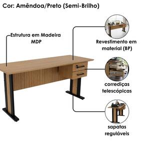 Mesa de Escritorio 2 Gavetas e Chave 160 cm ME4193 Tecno Mobili - Preto