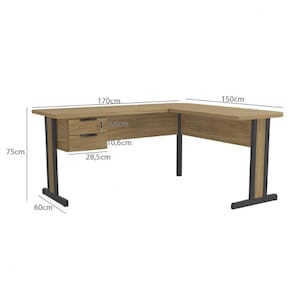 Dimensões: Altura: 75 cm Largura: 150 e 170 cm -Formato em L- Profundidade: 60 cm Peso: 40,43 kg