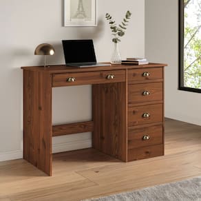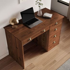 Com design atemporal e linhas limpas, a Escrivaninha Penteadeira Marrom (Castanho) Lana de 5 gavetas combina funcionalidade e charme em um único móvel. O tampo amplo garante conforto ergonômico para estudar ou trabalhar, enquanto as gavetas oferecem organização prática para materiais de escritório, livros ou itens pessoais.