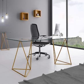Mesa De Escritório Cavalete Bela Vista Cobre E Vidro New Green - Cor: Branco