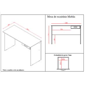 Mesa de Escritório com 1 Gaveta - Branco Móblis