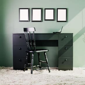A Mesa de Escritório Ditália, acompanhada de uma cadeira maciça, representa a escolha ideal para acrescentar um toque de requinte à decoração do seu escritório ou área de estudo. Equipada com sete gavetas espaçosas, esta mesa proporciona o perfeito para organizar todos os elementos essenciais da sua rotina, desde documentos importantes até material de escritório e de estudo. Isso permite que você mantenha o seu espaço sempre arrumado e com uma estética encantadora.