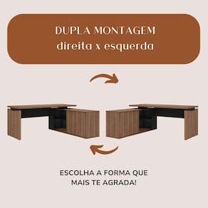 que tal a mesa de escritório connect ii? montando o home e dos sonhos? então comece com a mesa connect ! com amplo espaço de tampo, ela recebe superbem seu comdor e outros objetos de uso diário - e ainda nichos e 1 porta para itens de papelaria ou documentos, assim tudo fica organizado e pronto para uso. feita em formato de l, a peça otimiza a área disponível no cômodo e pode ser montada para o lado direito ou para o lado esquerdo, dependendo da estrutura da sua casa. já a cor preta e o amadeirado combinam superbem com qualquer decoração. É ou não perfeita? Marca: Modern
