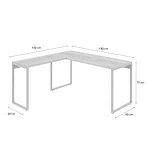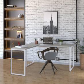 Mesa de Escritório em L Estilo Industrial 150x150cm Kuadra Snow / Est.Branca - Branco