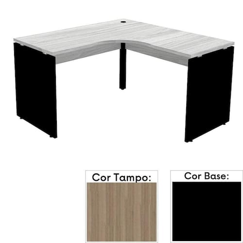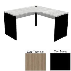 Mesa de Escritório em L Pé Painel PE25 em MDP 125 x 125 x 60 cm Cor Noce Naturalle e Base Preta - Marrom