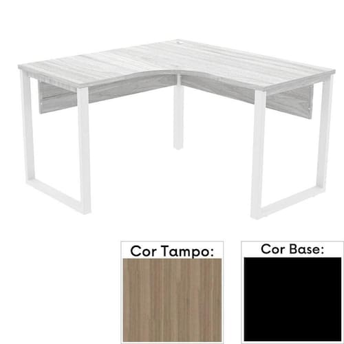 Mesa de Escritório em L Pé Tubular PE25 em MDP 125 x 125 x 60 cm Cor Noce Naturalle e Base Preta - Marrom