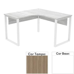 Mesa de Escritório em L Pé Tubular PE25 em MDP 135 x 135 x 60 cm Cor Noce Naturalle e Base Branca - Marrom