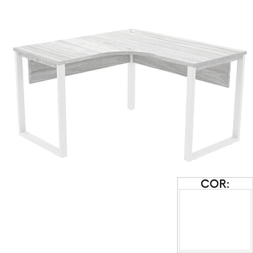 Mesa de Escritório em L Pé Tubular PE25 em MDP 145 x 145 x 60 cm Branca com Base Branca - Branco