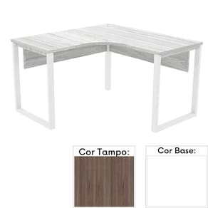Mesa de Escritório em L Pé Tubular PE25 em MDP 145 x 145 x 60 cm Cor Walnut e Base Branca - Marrom