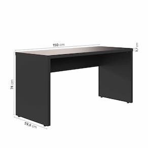 Mesa de Escritório em Tamburato Acabamento em Bp 150cm Ficus CabeCasa MadeiraMadeira Preto. Com um design minimalista e elegante, a Escrivaninha Reta Modular Ficus foi projetada para permitir que você crie diferentes configurações para atender às suas necessidades de espaço e organização combinando este móvel com outros da linha Ficus. Seja para um escritório em casa ou para uma empresa, esta peça irá adicionar um toque de sofisticação e funcionalidade ao seu ambiente de trabalho. Esta linha foi desenvolvida com uma técnica especial que consiste em unir várias camadas de MDF de alta qualidade, formando um painel leve porém resistente e com aparência robusta de 37mm de espessura, conhecido como tamburato. O acabamento das chapas é em BP com fitas de borda em PVC que conferem ainda mais durabilidade e resistência à umidade para o móvel. Possui também sapatas niveladoras que possibilitam o correto ajuste do móvel em qualquer piso.