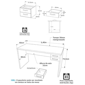 - Gaveteiro com 2 gavetas, acompanha corrediças e todos acessórios para montagem.
