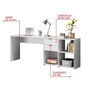 A Mesa Office NT 2060 da Notável Móveis, é um móvel completo que vai te auxiliar nas atividades do home office ou estudos. Com ela, você tem diversas possibilidades de montagem: de canto, montada reta, com o nicho para o lado direito ou esquerdo e você também pode escolher em que lado colocar as gavetas! O tampo de 25 mm é super espaçoso para você organizar itens essenciais ao dia a dia, e as gavetas possuem corrediças metálicas para guardar documentos e demais objetos. Um móvel moderno que vai atender as suas necessidades!