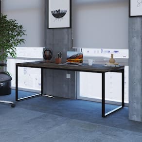 A Mesa de escritório se destaca por seu estilo industrial que se inspira nas instalações de fábricas das grandes cidades. Conta com tampo em MDP, perfeita para deixar seu escritório com designer moderno e dando ainda mais personalidade ao seu espaço. Os pés são em aço. Para um ambiente moderno é necessário escolher móveis arrojados, únicos, que irão impressionar logo à primeira vista.
