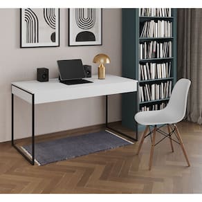 A Escrivaninha Industrial Malta junto com a Cadeira Eames agrega beleza e modernidade a sua casa. Esse é o produto perfeito para diversos tipos de ambientes, para quem busca otimização de espaço sem abrir mão do design moderno.