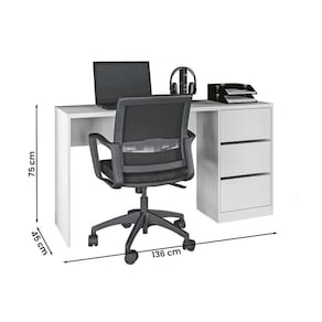 Marca: Atualle Móveis | Altura: 75 cm | Largura: 136 cm | Comprimento: 45 cm | Altura Embalado: 8,8 | Largura Embalado: 45,4 | Comprimento Embalado: 137,4 | Peso: 27,54 kg | Peso Embalado: 27,54 | Material: MDP de 15 mm | Estado de Origem: SP | Descrição do Tamanho: 75 x 136 x 45 cm | Modelo: Mesa Escritório Atualle 3 Gavetas | Garantia em meses: 3 meses de garantia para defeitos de fabricação | Inclui estante para livros: Não | Quantidade de gavetas: 3 | Com gavetas: Sim | Com luzes LED: Não | Requer montagem: Sim | É em forma de L: Não | É flutuante: Não | É gamer: Não | Código NCM (NcmCode): 94036000 | Com portas: Não | Precisa de baterias ou pilhas (areBatteriesRequired): Não | Regulamentações aplicáveis a produtos perigosos (supplierDeclaredDGHZRegulation)01: Não se aplica | Com prateleira para CPU: Não | Com tomadas: Não | Com fechadura: Não | Com ângulo ajustável: Não | É dobrável: Não | Com altura ajustável: Não | Estilo: Moderno | Acabamentos: Pintura | Inclui chaves: Não | Quantidade de rodas: 0 | Com bandeja móvel: Não | Inclui manual de instruções: Sim | É kit: Não | Capacidade em peso: 60 kg | Com módulo móvel: Não | Com passa-cabos: Não | Material das corrediças: Metálicas | Quantidade de prateleiras: 0 | Com rodas: Não | Com portas USB: Não | Inclui kit de instalação: Não | Quantidade de portas: 0 | Condição do item: Novo | Com prateleiras: Não | Profundidade: 45 cm Cor: Branco Fosco