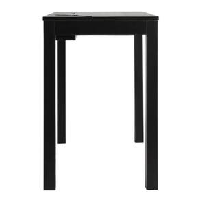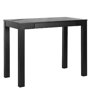Mesa de madeira em estilo moderno e minimalista: praticidade e organização, com gaveta, suporte para tablet e filtro de 5 tomadas e 2 USBs com tampo.