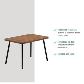 Especificações técnicas: Medidas: Largura: 120 cmAltura: 76,5 cm Profundidade: 80 cmPeso: 19,6 KgTampo: BP 40mmEstrutura: Tubo de Aço 40x40mmGarantia 3 Meses