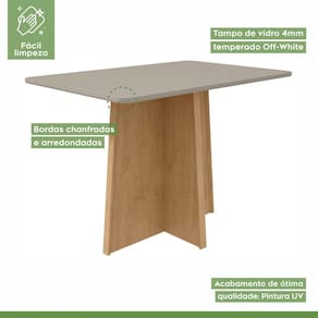 Quando chega o final de semana, não há sensação melhor do que reunir sua família e amigos para uma refeição com boa conversa, histórias e muita risada. Para isso, um jantar completo pede pela Mesa de Jantar Celebrare. É o móvel ideal para acomodar com primor todos os pratos preparados, copos, talheres e tudo mais. É produzida com materiais de qualidade, com cor e modelo que vai agradar todas as suas visitas e fazer com que a decoração de sua sala de jantar brilhe. Ah, não deixe de reparar no formato do tampo e da base, são responsáveis por agregar uma beleza fora de série ao lar-style. Ah, a peça não acompanha cadeiras e você deve adquiri-las separadamente para deixar o uso completo. Acabamento: Pintura Acabamento da Base: Pintura UV Acabamento do Tampo: Pintura UV Ambiente Principal: Sala de Jantar Complexidade da Montagem: Média: pode ser montado por mais de uma pessoa e/ou necessite de maior conhecimento para montagem Cor: Amêndoa Clean/Off White Cor do Produto: Amêndoa Clean/Off White Dobrável: Não Escala de Brilho: Fosco Espessura do Tampo: 22 Extensível: Não Itens Inclusos: 1 Mesa, Kit Ferragens e Manual de Montagem Linha ou Coleção: Celebrare Manual de Montagem e Instalação: https://cdn2.madeiramadeira.com.br/atributo/m-veis-lopas/589899-mesa-090-100-120-celebrare.pdf Material da Base: MDP Material do Tampo: Vidro/MDF Material Principal: MDF/MDP Medida da Base (A x L x P): 73,6x58,2x50cm Medida do Tampo (L x C x E): 80x120x2,2cm Necessita Montagem: Sim Origem do Produto: Nacional Peso: 37.72 Possui Base: Sim Possui Rodízio: Não Possui Suporte Giratório: Não Recomendações de Uso, Manutenção e Limpeza: Limpar com flanela limpa e seca. Não usar produtos abrasivos. Sistema de Montagem: Parafusos Suporta Até (kg): 60