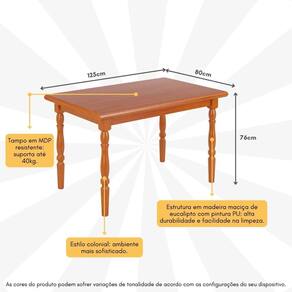 Aproveite momentos especiais à mesa com a Mesa de Jantar 125cm Multimóveis CR20277. Sua estrutura em madeira maciça de eucalipto garante durabilidade e resistência, enquanto o tampo em MDP suporta até 40kg e oferece espaço para até 4 lugares. O acabamento em pintura PU proporciona facilidade na limpeza do móvel, tornando-a uma opção prática para o dia a dia. O estilo colonial agrega charme e elegância, tornando o ambiente mais acolhedor e convidativo.