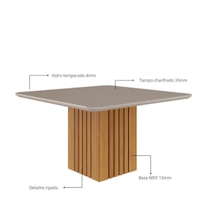 Características: Acabamento em laca Base em MDF 15 mm Detalhes ripados Estrutura em MDF Formato quadrado Tampo com bordas chanfradas 25 mm Vidro temperado 4 mm