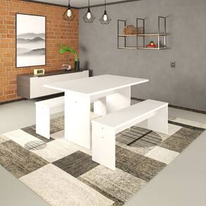 O Conjunto de Mesa de Jantar Essence com 1 Banco ESMJ81352.CJ2B combina elegância e praticidade para ambientes contemporâneos. A mesa de jantar e os bancos são fabricados em MDP BP de 2,5cm, com bordas em PVC de 1cm, garantindo durabilidade e um excelente acabamento. Com um design minimalista e pés robustos, o conjunto oferece estabilidade e se adapta a diferentes estilos de decoração. Ideal para salas de jantar ou áreas de convivência, o Conjunto Essence é a escolha perfeita para quem busca qualidade e funcionalidade. Acabamento: BP Acabamento da Base: Melamínico Acabamento do Tampo: BP Ambiente Principal: Sala de Jantar Complexidade da Montagem: Alta: deve ser montado por um montador especializado Cor: Branco Cor do Produto: Branco Design da Base: Pedestal Duplo Dobrável: Não Escala de Brilho: Fosco Espessura do Tampo: 25 mm Extensível: Não Itens Inclusos: 1 Mesa de Jantar + 1 Banco Manual de Montagem e Instalação: https://cdn2.madeiramadeira.com.br/prd/compace-dalex/2674855-1738956922-977410-149091.pdf Marca: Metalig Material da Base: MDP Material do Tampo: MDP Medida da Base (A x L x P): 71,5 x 135 x 80 Medida da Mesa (A x L x P): 74 x 135 x 80 Medida do Tampo (L x C x E): 135cm x 80cm x 2,5cm Necessita Montagem: Sim Origem do Produto: Nacional Peso: 46,21 kg Possui Portas: Não Possui prateleira: Não Possui Rodízio: Não Possui Suporte Giratório: Não Possui Vidro: Não Recomendações de Uso, Manutenção e Limpeza: Para a limpeza, utilize flanela seca ou pano macio levemente umedecido em água. Utilize um pano seco em seguida. Evite contato com produtos químicos (solventes, thinner, acetona, etc) e não utilize nenhum tipo de esponja de aço. Resistência à Chuva: Não Resistência ao Sol: Não Sistema de Montagem: Parafuso, Sapata Niveladora, Bucha C/Rosca e Chave Hexagonal Suporta Até (kg): 570 kg Marca: Metalig